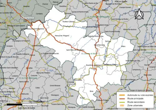 La communauté de communes Dronne et Belle en 2014 dans le département de la Dordogne. | |