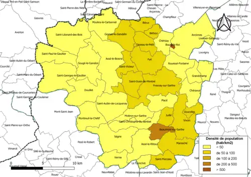 | Beaumont-sur-Sarthe | 72029 | Belmontais | 6,64 | 1 974 (2022) | 297 |