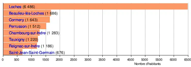 Comparaison de la population des 8 plus grandes communes de la CC Loches Développement en 2007 :