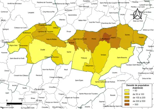 | Villaines-les-Rochers | 37271 | Villainois | 12,47 | 1 043 (2022) | 84 |
