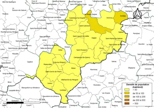 | Campagnac-lès-Quercy | 24075 | Campagnacois | 19,67 | 324 (2022) | 16 |