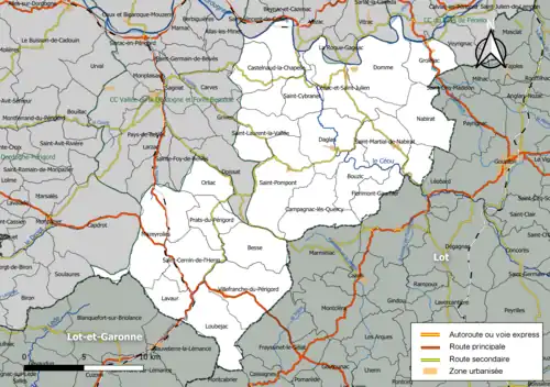 La communauté de communes de Domme-Villefranche du Périgord en 2014 dans le département de la Dordogne. | |