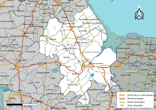 - Deux communes de la communauté ont fusionné au sein de la commune nouvelle de Terre-et-Marais : Saint-Georges-de-Bohon et Sainteny.