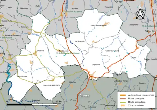 - ↑ « Projet de schéma départemental de coopération intercommunale (SDCI) de l'Indre. » [PDF], sur le site de la Préfecture de l'Indre (consulté le ).