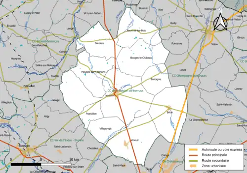 - ↑ « Liste des communautés de communes et de la communauté d'agglomération dans l'Indre au 1er janvier 2020. » [PDF], sur le site de la Préfecture de l'Indre (consulté le ).