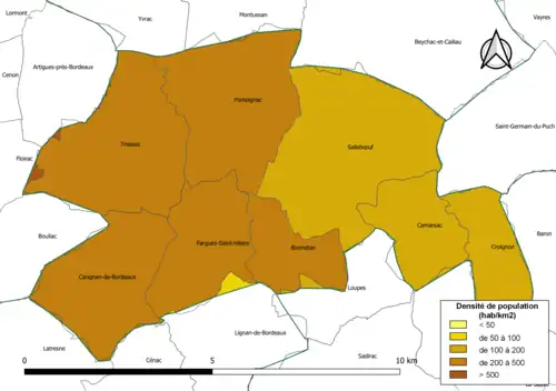 | Pompignac | 33330 | Pompignacais | 11,62 | 3 485 (2022) | 300 |