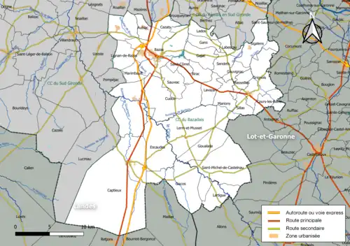 - ↑ [PDF] Arrêté préfectoral en date du 23 décembre 2013 portant composition du conseil communautaire de la communauté de communes du Bazadais.