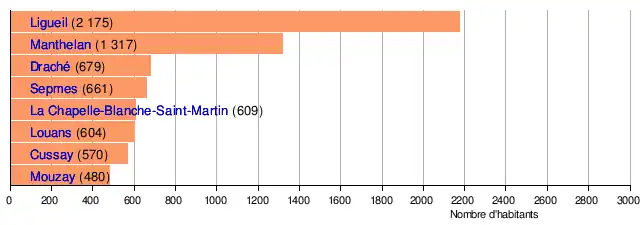 - Ligueil, avec un nombre d'habitants représentant près de 23 % de la population de l'EPCI