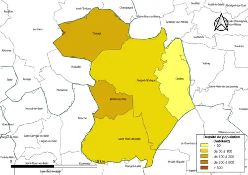 | Brette-les-Pins | 72047 | Brettois | 14,51 | 2 127 (2022) | 147 |