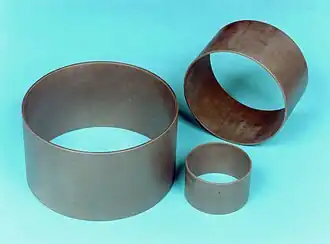 - Le palier lisse lubrifié au LOx a résisté à un test pendant quelques heures à une vitesse de rotation de 10 000 tr/min, sous diverses charges, ainsi que 50 arrêts-départs dans des conditions de frottement partiellement à sec, en ne montrant pratiquement aucune abrasion[23].