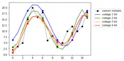 Pour être exploitée de façon numérique la courbe doit être représentée par un ensemble de valeurs discrètes (échantillonnage). Le choix du nombre de valeurs dépend du volume d'information à traiter et de la précision souhaitée.