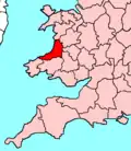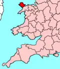- Territoire de l’ancienne principauté de Gwynedd (divisé en 3 comtés)