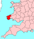 | Pembrokeshire | 11 districts[41] | 1 590,50[41] | 93 980[41] | 59 | ||