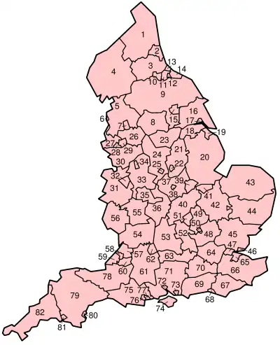 L'Angleterre est actuellement découpée en 82 comtés ou équivalent :
