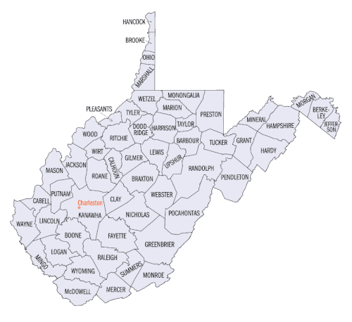 Rappel : La Virginie Occidentale compte 1 852 994 habitants sur une superficie de 62 809 km2, soit une densité de 29,5.