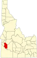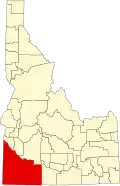 | Canyon | 1892 | La gorge de la Boise River ou la gorge de la Snake River qui fait office de frontière naturelle avec le comté d'Owyhee | Caldwell | 198 871 | 1 563 | 1 521 | 42 | 130,7 | 5,3 % | ![]() |