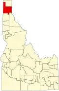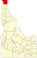 | Boundary | 1915 | La frontière avec le Canada | Bonners Ferry | 10 853 | 3 310 | 3 286 | 24 | 3,3 | -1,1 % | ![]() |