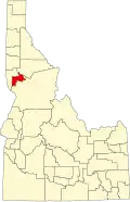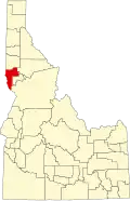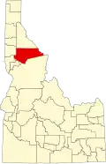 | Clearwater | 1911 | La Clearwater River, un tributaire principal de la Snake River, qui traverse le comté | Orofino | 8 577 | 6 444 | 6 364 | 80 | 1,3 | -2,1 % | ![]() |