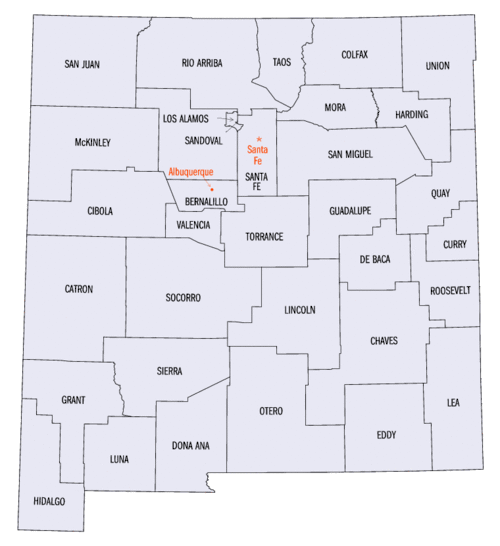 L'État américain du Nouveau-Mexique est divisé en 33 comtés (counties).
