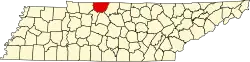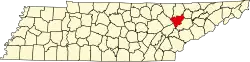 | Fentress | 049 | Jamestown | 1823 | Les comtés de Morgan, d'Overton et de White | James Fentress législateur d'État du Tennessee. | 16 625 | 1 292 km2 | |