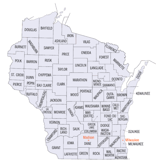 L’État américain du Wisconsin est divisé en 72 comtés (counties).