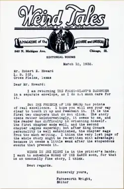 | Première apparition | Weird Tales (décembre 1932, USA) |
