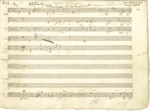 , cadence à la mesure 291, 303 mesures - Andante, en si bémol majeur, à