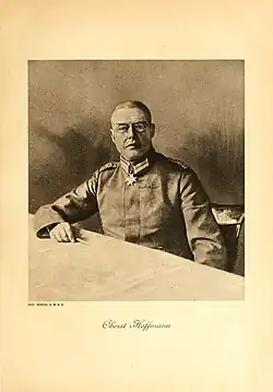 - ↑ Max Hoffmann exerce différentes fonctions au sein des états-majors des armées déployées sur le front de l'Est, puis à l'Ober Ost depuis le .