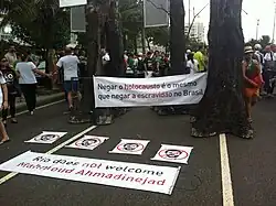 Manifestation contre la présence du président Iranien Ahmadinejad.