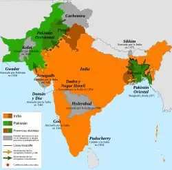 À la fin de la Seconde Guerre mondiale, le Royaume-Uni a reconnu l'indépendance de ses colonies en territoire indien[2]. La Partition des Indes s'effectue alors en 1947, à la suite de ce soudain octroi d'indépendance[3],[4].