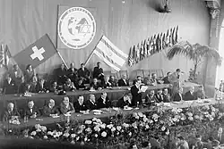 La première Conférence juive mondiale a eu lieu à Genève en août 1932. Le sioniste Nahum Goldmann dirigeait une commission préparatoire. C'était l'un des principaux défenseurs de la création d'un organe international représentant les Juifs[21]. Goldmann a défini comme suit l'objectif du Congrès juif mondial :
