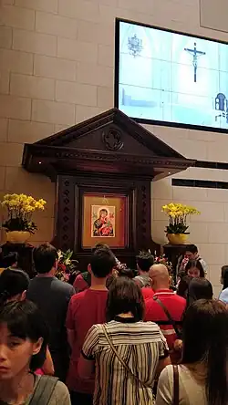 Neuvaine de prière devant une reproduction de l'icône originale, Église Notre-Dame-du-Perpétuel-Secours de Singapour.