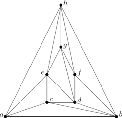En mathématiques, et notamment en théorie des graphes, la conjecture de Scheinerman, qui, maintenant qu'elle est démontrée, est un théorème, affirme que tout graphe planaire est le graphe d'intersection d'un ensemble de segments de droite dans le plan. Cette conjecture a été formulée par Edward R. Scheinerman dans sa thèse de doctorat[1],[2] de 1984, à la suite de résultats antérieurs selon lesquels chaque graphe planaire pouvait être représenté comme le graphe d'intersection d'un ensemble de courbes simples dans le plan de Ehrlich, Even et Tarjan[3]. La conjecture a été démontrée par Jérémie Chalopin et Daniel Gonçalves en 2009[4].