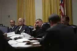Ces dispositions ne seront pratiquement jamais appliquées[8]. Les réunions du NSC sont devenues dans la pratique le lieu où le président donne ses directives plus que l’endroit où il consulte les avis et élabore ses décisions.