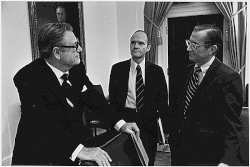 - ↑ Le , lors de la crise de la guerre du Kippour, un journaliste demande à Kissinger : « En tant que conseiller pour la sécurité nationale, comment [...] évaluez vous la gestion de la crise par le département d’État ? » Ce à quoi il répond : « Nous sommes très impressionnés, à la Maison-Blanche, par le leadership dont bénéficie le département d’État » (Nathan et Oliver 1994, p. 38).