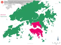 Techniquement, seules l'île de Hong Kong, Kowloon et New Kowloon relèvent de la compétence du conseil urbain. Mais le département des services urbains (en), branche exécutive du conseil urbain, commence à desservir les Nouveaux Territoires à partir de 1953[2].