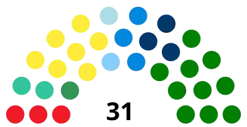 Le conseil régional élu lors des élections de 2019 est réparti avec les sièges suivants :