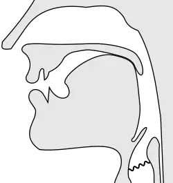 - Son point d'articulation est vélaire, ce qui signifie qu'elle est articulée la partie postérieure de la langue (le dorsum) contre le palais mou (ou velum).