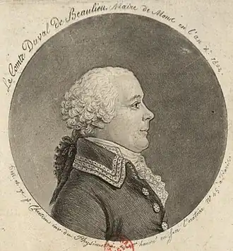 Le comte Constant Duval de Beaulieu, né à Leuze en 1751 et décédé à Mons en 1828, était un homme politique des Pays-Bas méridionaux, - s'appelèrent aussi à travers l'histoire Pays-Bas du Sud, ou encore Pays-Bas Catholiques - maire de Mons de 1800 à 1815.