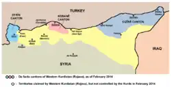 Zones contrôlées et revendiquées par les Kurdes syriens et leurs alliés (Février 2014).