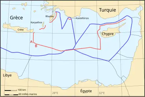 Les deux pays revendiquent actuellement une zone de 6 milles autour des côtes. Conformément aux dispositions de la Convention des Nations unies sur le droit de la mer, ils pourraient porter à 12 milles cette zone, mais la Turquie considère que cela aboutirait à une répartition inéquitable de la souveraineté sur la région, et que si la Grèce en prenait l'initiative, cela constituerait un casus belli[2].
