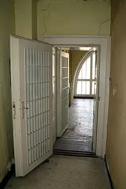 Sas à double porte insonorisée, dans un centre de diffusion radio. Tant que l'une des deux portes est fermée, le bruit n'entre pas.