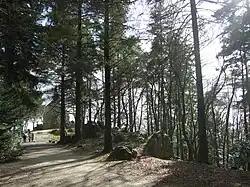 Mortain, petite chapelle en 2009 (cote 312, au sud de la cote 314). Au fond, le poste d'observation derrière la chapelle.