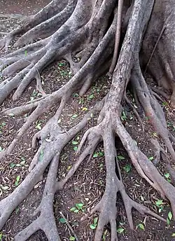 - ↑ Crook, M. J., Ennos, A. R. et Banks, J. R., « The function of buttress roots: a comparative study of the anchorage systems of buttressed (Aglaia and Nephelium ramboutan species) and non-buttressed (Mallotus wrayi) tropical trees », Journal of Experimental Botany, vol. 48, no 9, , p. 1703‑1716 (DOI 10.1093/jxb/48.9.1703)