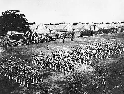 À cette époque, l'Allemagne n'a pas activement poursuivi des ambitions colonisatrices en Chine, contrairement au Royaume-Uni et à la France. De plus, le gouvernement chinois voyait l'Allemagne comme un partenaire nécessaire à la modernisation du pays. Après un premier mouvement d'auto-renforcement de la Chine qui apparemment échoua à la suite de la défaite lors de la guerre sino-japonaise, Yuan Shikai demanda aux Allemands de l'aider à fonder la première armée d'auto-défense (chinois : 自強軍 ; pinyin : Zìqiáng Jūn) et la création de la nouvelle Armée (新建陸軍 ; Xīnjìan Lùjūn).