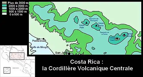 | Localisation de la cordillère Centrale au Costa Rica. | ||