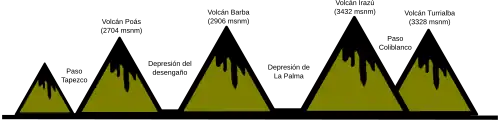 Les dépressions entre les volcans, tels que Tapezco, Desengaño, La Palma et Coliblanco, permettent l’entrée dans la vallée Centrale des alizés venant de la mer des Caraïbes, et le développement de voies de communication entre la vallée Centrale d'une part et les zones nord et atlantique du Costa Rica d'autre part.
