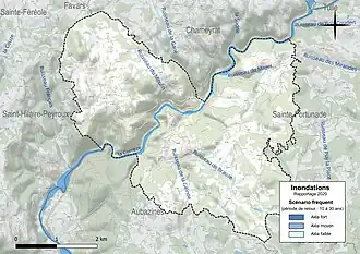 La commune fait partie du territoire à risques importants d'inondation (TRI) de Tulle-Brive, regroupant 20 communes concernées par un risque de débordement de la Corrèze et de la Vézère (17 dans la Corrèze et trois dans la Dordogne), un des 18 TRI qui ont été arrêtés le 11 janvier 2013 sur le bassin Adour-Garonne[16]. Des cartes des surfaces inondables ont été établies pour trois scénarios : fréquent (crue de temps de retour de 10 ans à 30 ans), moyen (temps de retour de 100 ans à 300 ans) et extrême (temps de retour de l'ordre de 1 000 ans, qui met en défaut tout système de protection)[17]. La commune a été reconnue en état de catastrophe naturelle au titre des dommages causés par les inondations et coulées de boue survenues en 1982, 1999 et 2001[18],[14]. Le risque inondation est pris en compte dans l'aménagement du territoire de la commune par le biais du plan de prévention des risques (PPR) inondation « Corrèze amont », approuvé le [19].