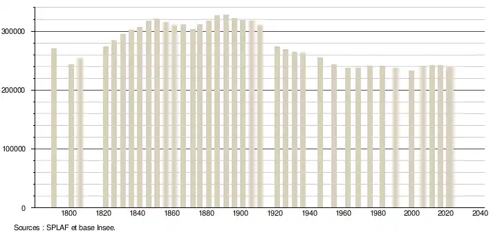 - ↑ Fiches Insee - Populations de référence du département pour les années 2006, 2007, 2008, 2009, 2010, 2011, 2012, 2013, 2014, 2015, 2016, 2017, 2018, 2019, 2020, 2021 et 2022