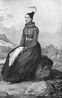 - ↑ (is) Heimilisiðnaðarfélag Íslands, « Búningur stúlkna, 19. öld », sur Heimilisiðnaður (consulté le )